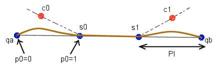 - tangent c1 does not affect the spline before point S1 and tangent c0 doesn't affect the spline after point S0; moreover, interpolation between S0 and S1 is linear - those two observations gave me an idea of existance of those points